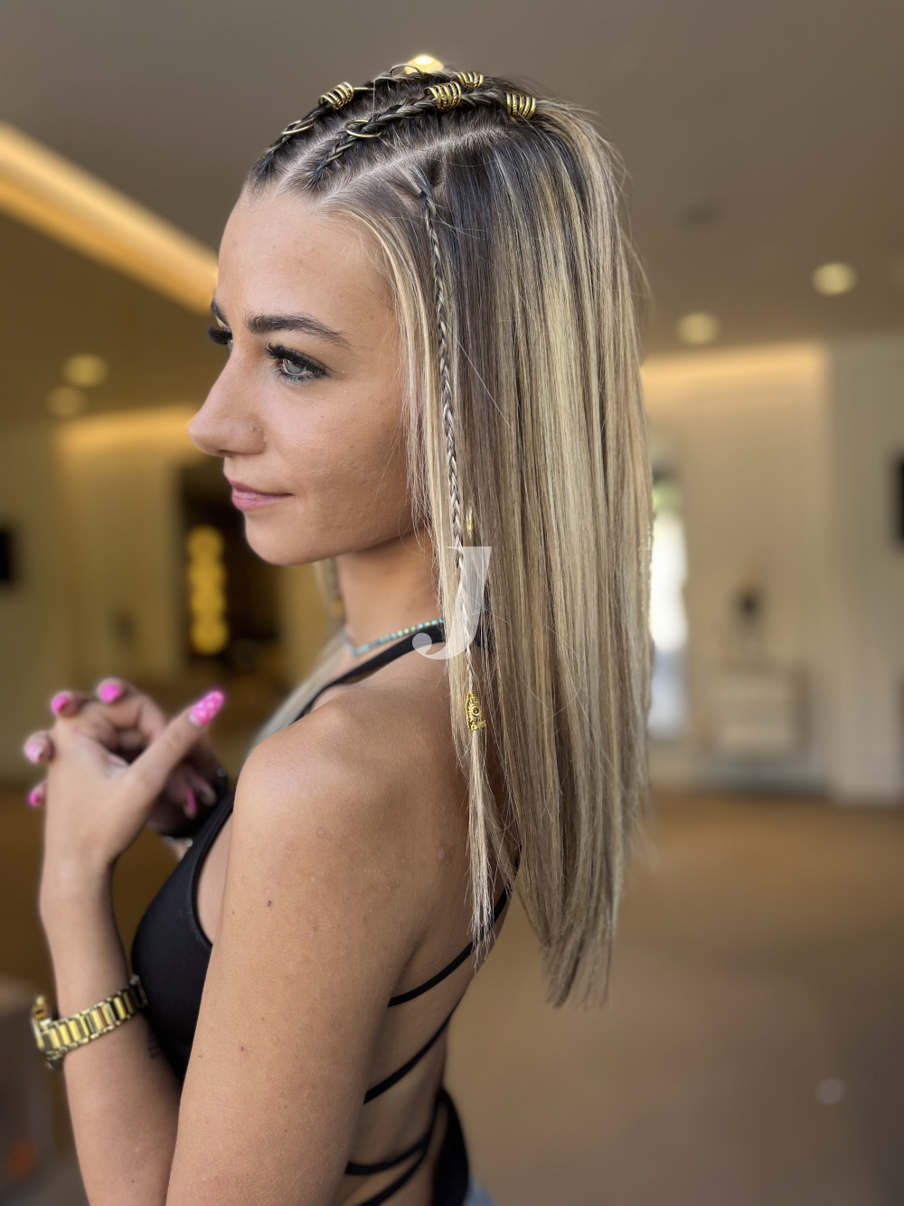 Il Degradé è stato realizzato con una nuance Biondo Chiarissimo Dorato su taglio Medio-Corto